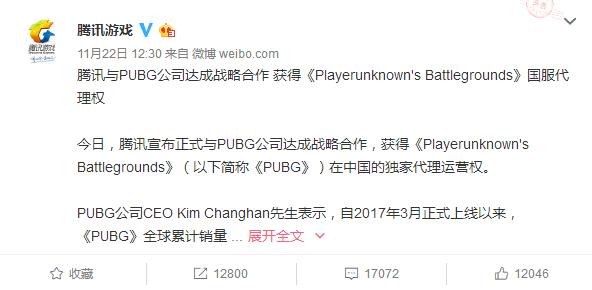 这是要我们换触摸显示屏吗???因为前些天腾讯宣布了正式和蓝洞公司(PUBG)达成战略合作,于是我就去微博上看了看。微博上腾讯游戏是在11月22日的12:30分正式宣布的。