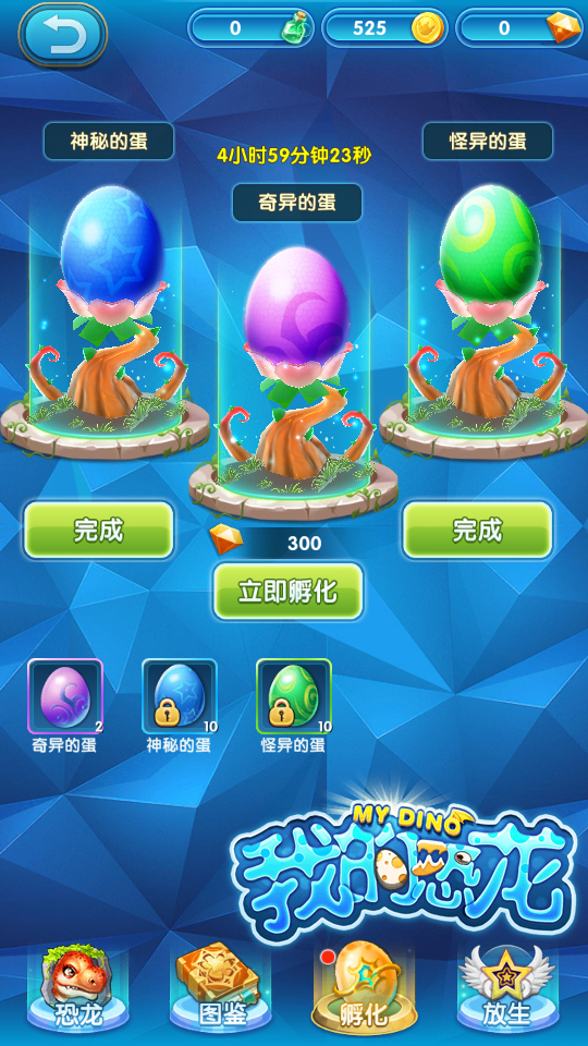 上图是恐龙蛋的孵化过程,这个是游戏实际界面吧,能看到下面的恐龙、图鉴、孵化、方生。图片来源依然很明显,你懂的