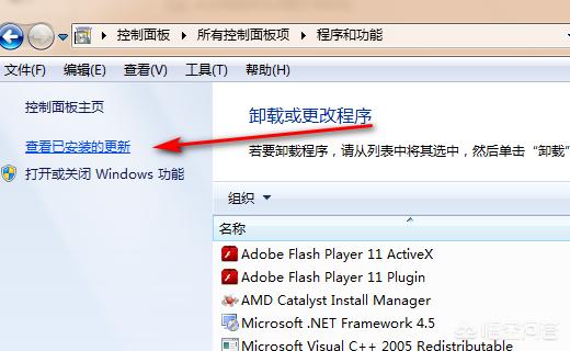 3、进入程序和功能页面后,点击左侧工具栏中的查看已安装的更新,如图所示。