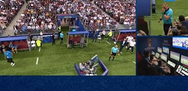 但是今年引进了新技术,360度摄像回放的视频助理裁判组!在主裁和边裁无法判定的情况下,可以询问视频裁判组。所以主裁询问了视频裁判。