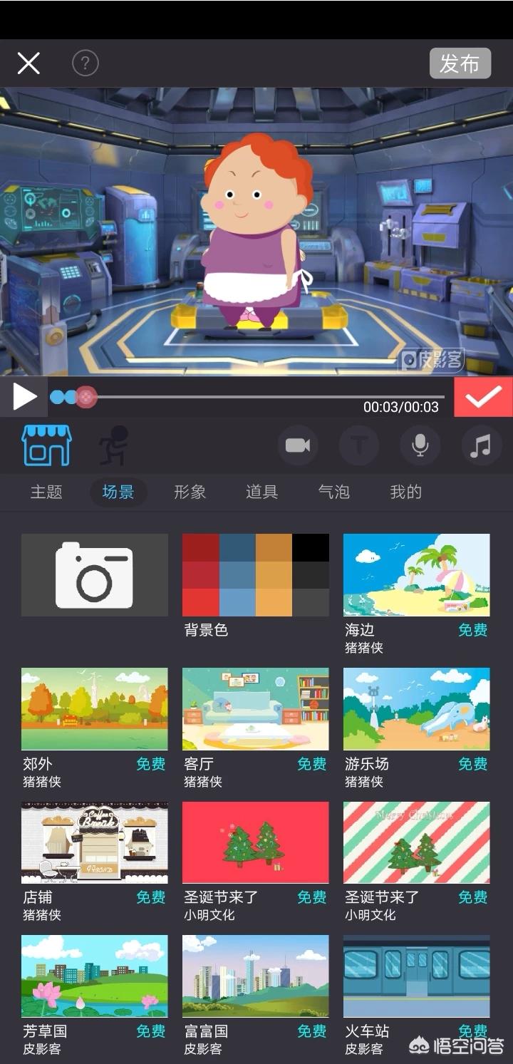 皮影客是全球领先的互联网动画云引擎技术提供商,首次实现让普通人几分钟就能做出准专业级动画片。这个是他们官网的介绍,皮影客相较于万彩动画大师开放的动画角色和场景更多一些,个人版不需要付费,但是导出的视频带有水印,这点和万彩动画大师免费版一样。手绘视频用。