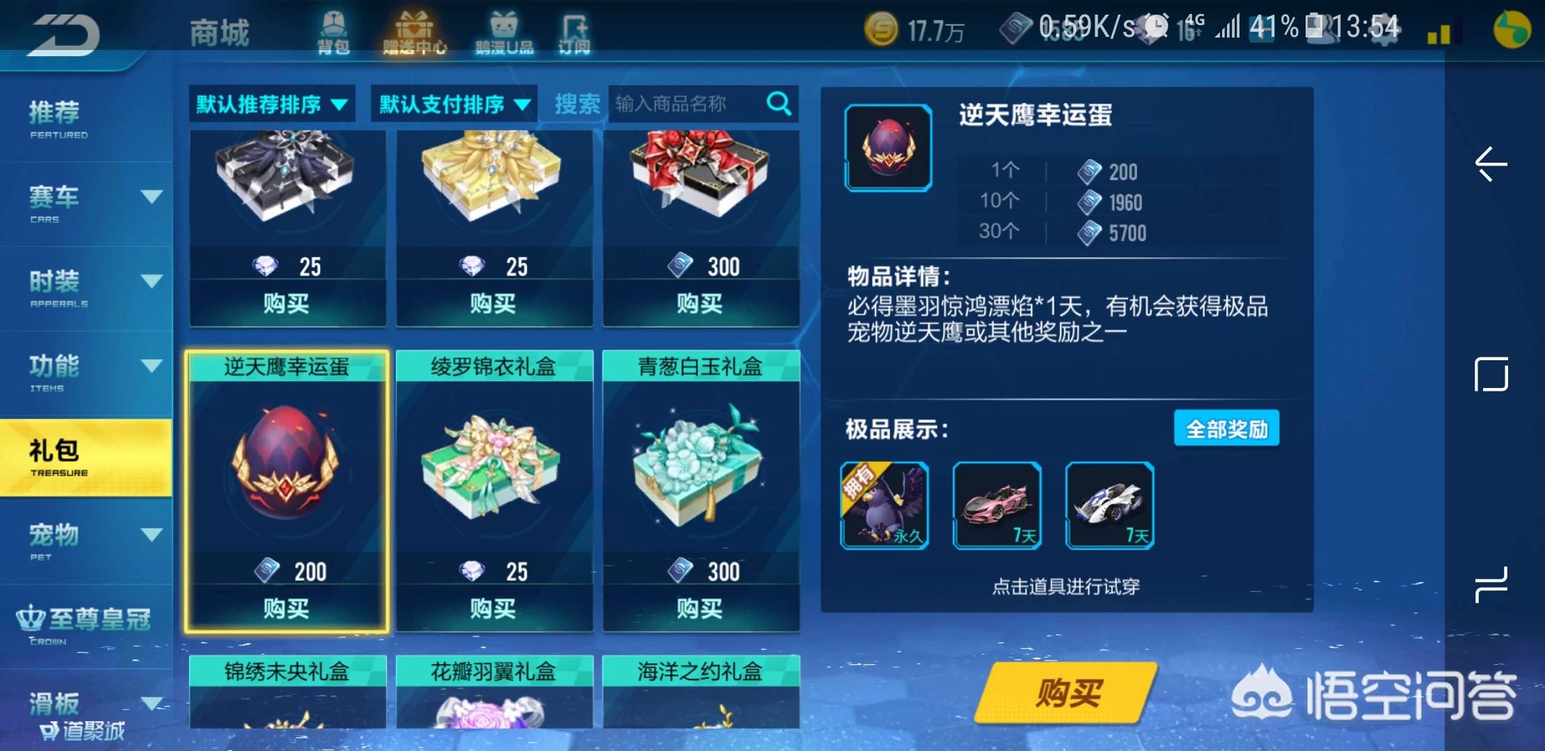 赶紧下架,赶紧下架,因为我已经有了。哈哈,开个小玩笑,逆天鹰这个宠物当时当时出的时候我就已经抽了,当时我看贴吧里很多人说这个宠物很鸡肋,加速不如梦琪,加氮气的条件又比较苛刻,但是我觉得很强,毕竟又能加速,又能加氮气的宠物不多,而且这只宠物形态和其他宠物也不一样,颜值比较高我就第一时间就入手了,用着感觉还不错,直接代替了我之前不久前才抽到的梦奇。毕竟是抽奖形式的宠物,下架也是情理之中,赶紧下架吧。