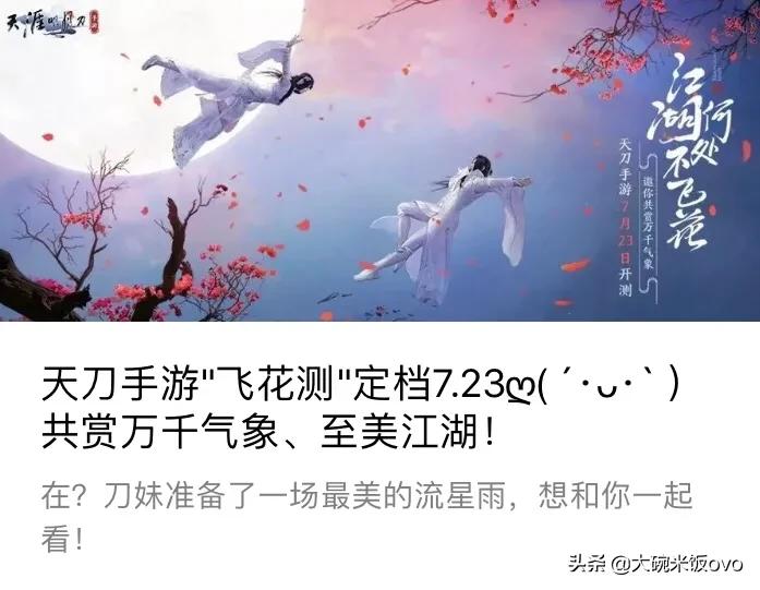 天刀手游二测“飞花测”已经定档7月23日啦! 本次测试将在7月23日-7月29日开启(共7天),并且安卓、iOS用户均可参与!另外本次测试依旧是删档测试。