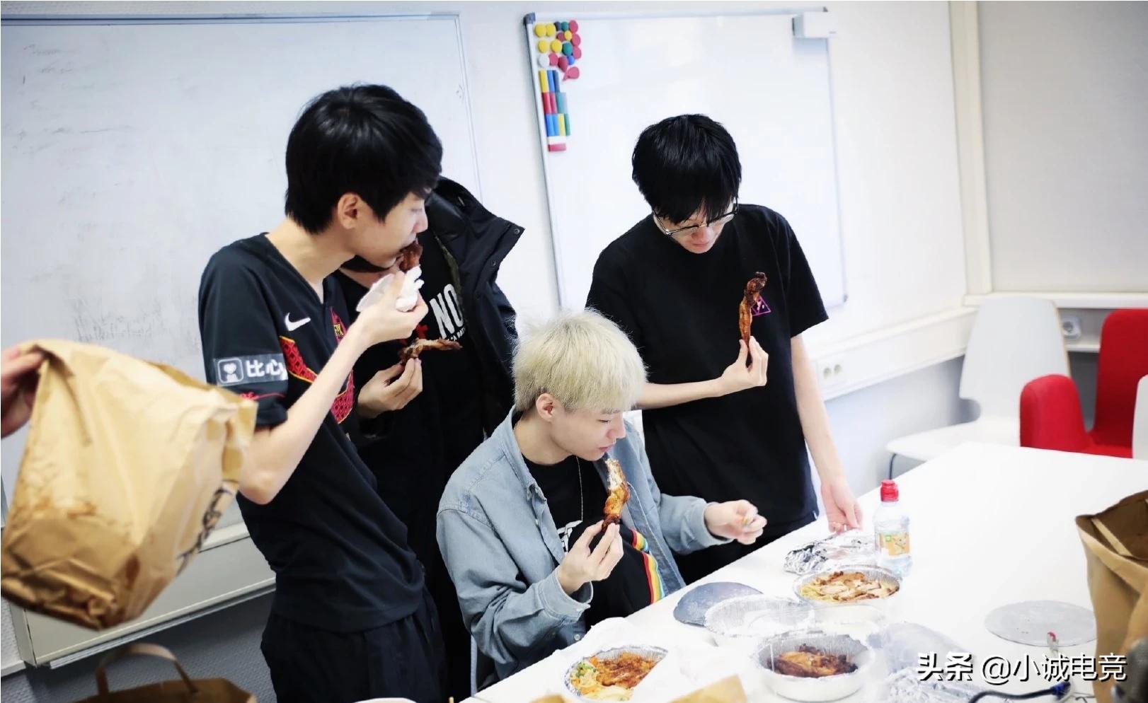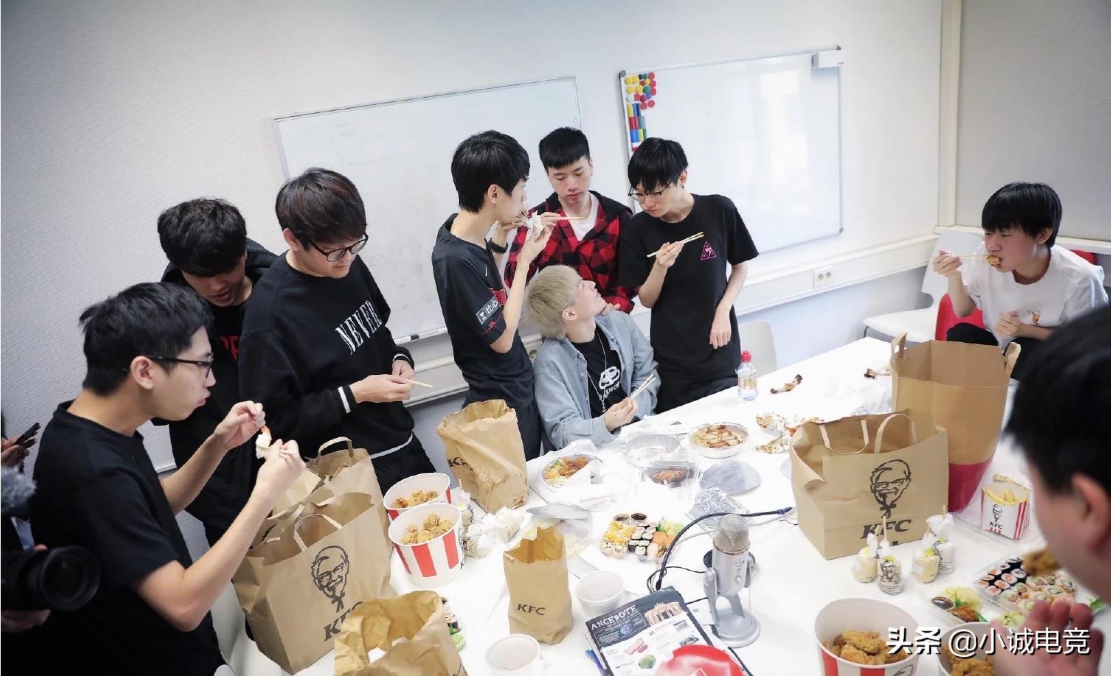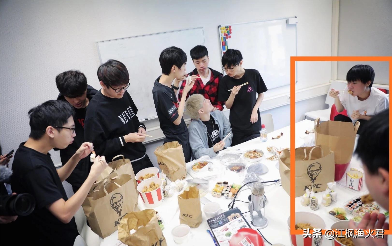 在FPX的官博当中,除去FPX的队员,细心的网友还发现了RNG的队员。其实RNG在往年都有这个习惯,小组赛开始之前都会去其他战队串门,交流学习。不过这次正好是到了FPX饭点的时候,可能在欧洲吃的还不是特别习惯,于是就点了KFC的外卖,从图片上来看,大家吃的还是特别开心。