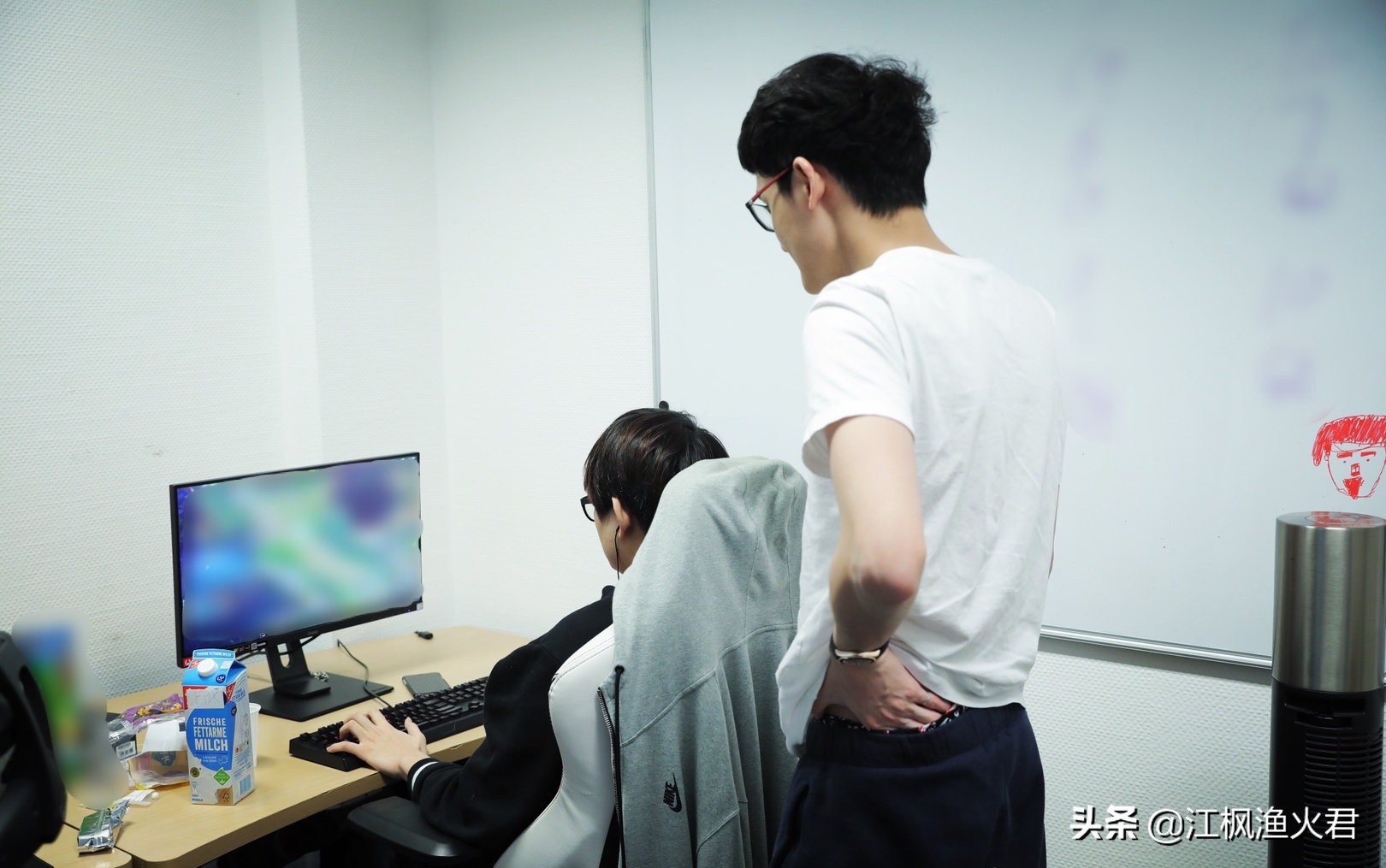 在FPX官博晒的照片中,队伍老大哥上单金贡一脸认真打游戏的样子引来了RNG打野卡萨注目,是的你没看错,就是RNG的打野选手卡萨!虽然在这张照片中,我们无法得知金贡到底在进行着什么样的训练内容,但打野跟上单之间的互动交流还是蛮有意义的,不过卡萨背后的一个小红人头像又是谁呢,这就让人看不懂了。而这一次FPX官博晒的近况照里,其实不仅是队员的训练照,也告诉了粉丝们RNG战队前来进行探班,所以才会有RNG打野卡萨等人的出现。