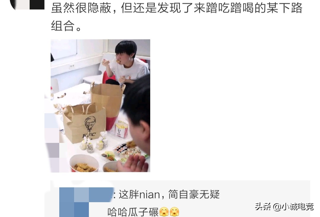 看官博也只是图个新鲜,图乐子还得看网友的评论,网友也是纷纷调侃,虽然隐藏的很好,但是还是发现了,来蹭吃蹭喝的某下路。其实小明看过去很内向很老实,其实小明才是RNG队伍的交际花,和各大战队的关系都特别好,随便去某战队,到了饭点就可以坐下吃饭,这次估计又是小明带头冲锋来FPX基地,蹭吃蹭喝。