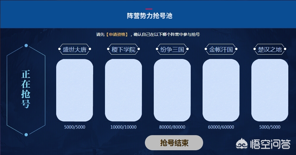 第三步 加入阵营参与抢号。根据我的经验 会有一个满员的阵营 和一个人数很少的。这样子我推荐大家选择那个中间人数的。选择立即抢号。