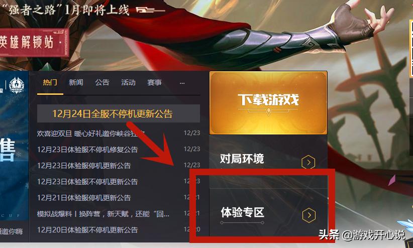 如果你实在找不到,你进入官方网站有每天更新王者荣耀新闻的地方,这个板块的右边就可以找到体验专区。