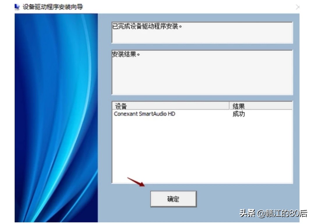 5、等待驱动安装完成后点击确定,然后重启一下电脑,声卡驱动就可以正常使用了。(下图5)