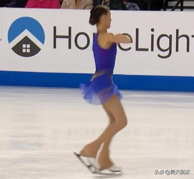 她的这套自由滑绝对是逆天般的存在,全套动作中完成了两次勾手四周跳,这是大奖赛历史上的首个四周跳,而且她一做就完成了两个。