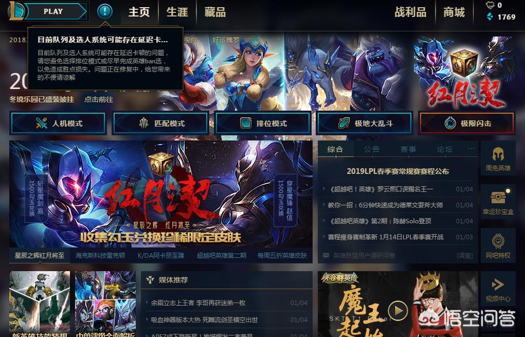 可是抽奖活动这么多,最近的LOL客户端却不见得有多么好,还老是会出现各种问题,今天维护明天修复,搞得我们玩家头皮发麻,也不知道到底这个LOL客户端什么时候才能正常。说起最近的LOL客户端问题,那应该就是打排位的时候锁定英雄的问题了,在锁定英雄或者是禁选英雄的前5,6秒你要是没锁,那么恭喜你,你将会锁定不了最后直接被系统强退出去,然后就掉胜点,还得排队,心里真是苦的不行,但又没法找谁说理去。