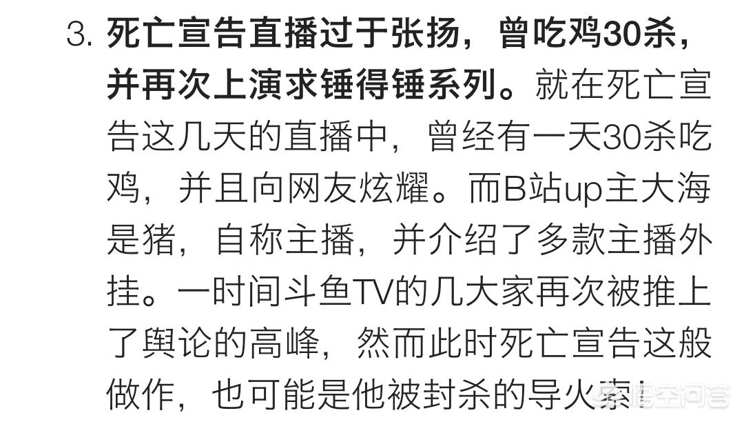 首先对于这个问题,我想知道题主问的是哪一次被封呢?死亡宣告在斗鱼直播20几天中,一共被封两次。第一次是被超管封的,而另一次是永久封杀!