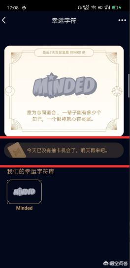 5、幸运字符需要抽取,每天有一次机会,点击去抽卡,如下图所示。
