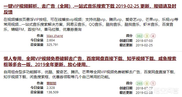 几乎是谷歌最强大的插件,可以安装诸多的脚本,例如:一键去广告、一键搜索音乐下载、一键搜索VIP影视电影、一键下载网盘文件、一键搜索小说等等,只需要在这个网站找到相应的脚本就行了,而我最喜欢的就是用它来搜索观看VIP电影!请看教程!