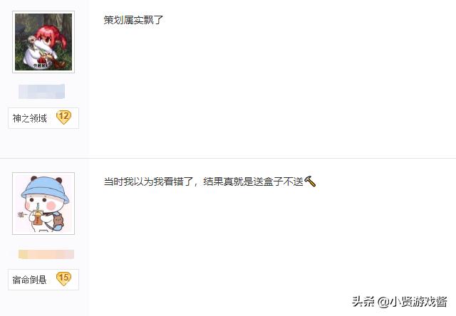 而对于策划在签到活动赠送盒子不送锤子的行为,自然也吸引了不少玩家怒喷,有网友称“当时我以为我看错了,结果真就送盒子不送锤子”,更是有玩家直言“策划实属飘了”,确实,如网友所言策划赠送5个魔锤礼盒确实让人感到不可思议,同时也引发我们玩家思考,要之前在此之前的奖励都是非常丰富的,25灿烂徽章,黄金书随便送,怎么突然之间奖励变辣鸡了呢?