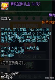 21天则是1件传说装备,5个期限的品级调整箱,10张智慧的引导门票,100点疲劳——