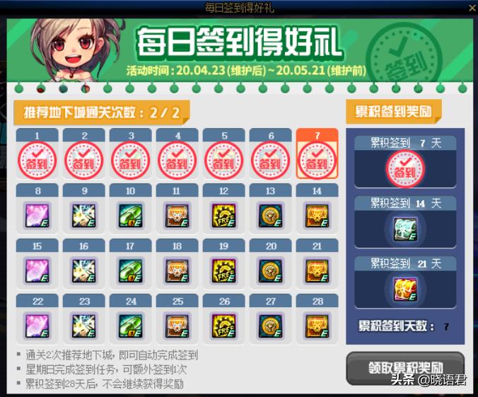 每月签到奖励可谓是DNF策划例行活动之一了,玩家们每天可以领取一定的小奖励,累计7、14、21天则是可以获取一个较大的奖励——