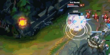 快乐风男的基本操作,E技能释放的同时接Q和闪现,这招在对线期假装补兵靠小兵当跳板直接大招对面绝对能吓他个措手不及