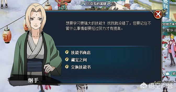 在地图“木叶村南”找到福禄丸身边的纲手,她能够提供交换技能书的服务。由于交换技能书需要等额的物品或技能书,越是稀有爆出的技能书也越高级,所以还请三思。【单本技能书的价格不菲】
