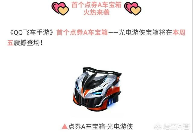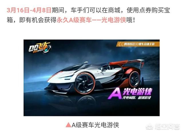 3月14日晚上飞车公众号发布一条消息,公布了第一个点卷A车宝箱,抽取永久光电游侠。