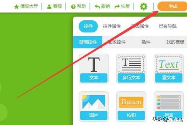7、设计完页面以后,点击右上角的生成按钮,如下图所示