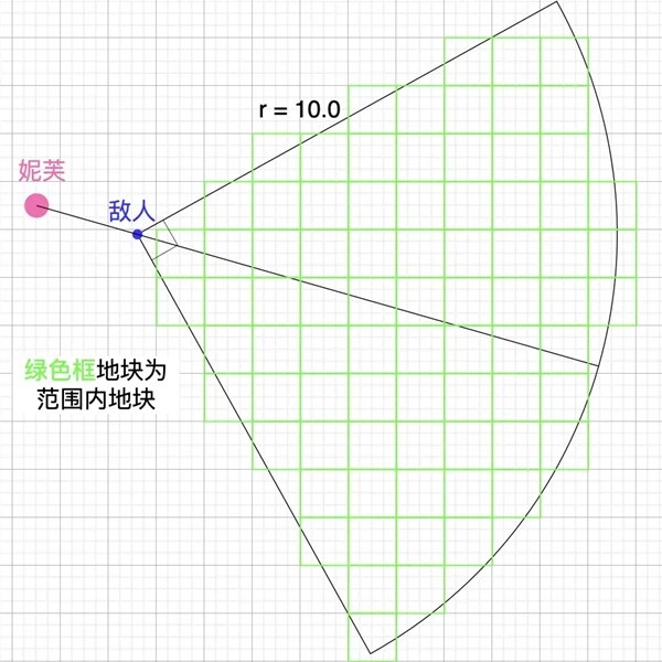 将此扇形中包含的,与路径终点直接联通的(仅判断可通行属性,无视障碍物/坑),非蓝门非地穴(空想花庭的临时步道始终不视为地穴)的所有地块,设置为恐惧的目标区域。