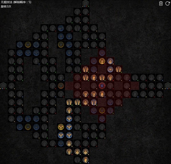 但是请注意,此套点法严重偏后期,需要相对优秀的装备词缀基础,个人感觉最少90级才能适用,(武器就需要至少两个满值全属性,才能激活所有稀有节点翻倍效果)。