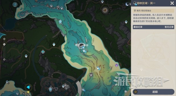 第一个位置在枫丹廷右上角水下区域【塔拉塔海谷】,可以传送到附近传送锚点再前往挑战位置。