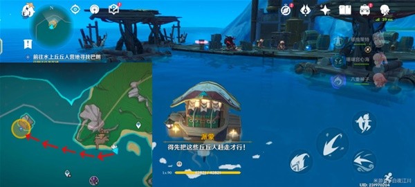 驾驶着浪船沿着任务指示来到水上丘丘人营地。