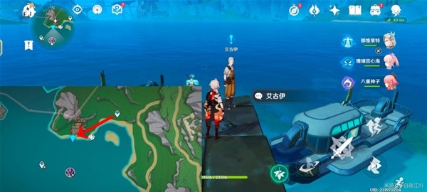 传送到大世界boss千年珍珠骏麟东北侧的锚点。来到西南边的码头(图示位置),与艾古伊对话,即可接取任务。