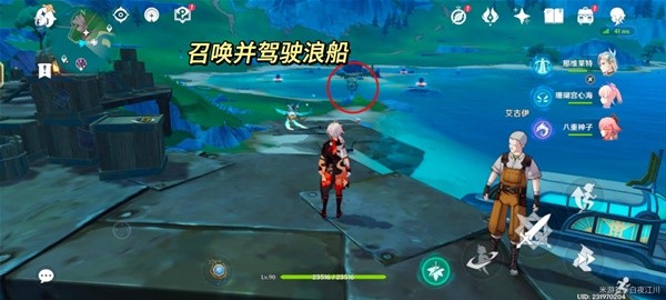首先我们把视角转到东方向,前往浪船锚点,召唤浪船。