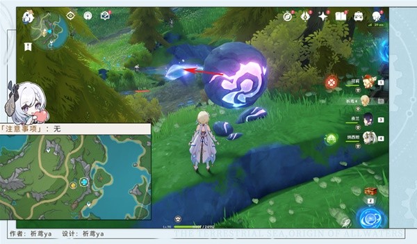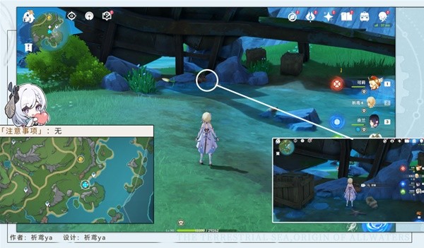 (9)调查水面快速游动的涟漪,就会出现仙灵,降低水位,再用芒元素攻击储物盒即可