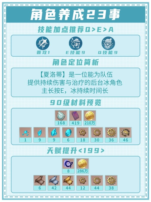 《原神》夏洛蒂材料一览及配装指南 2023-11-13 16:30:32 大中小 《原神》夏洛蒂是一个冰系角色,有着很强的功能性,想要知道她如何培养的玩家请看下面“千羽绝响”带来的《原神》夏洛蒂材料一览及配装指南,希望能够帮助大家。 全文查看