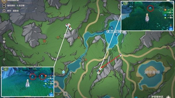 在做完任务「伊黎耶的野精灵」后,湖中心出现新的湖光铃兰