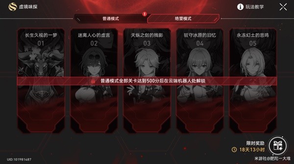 「绝望模式」难度更高,且没有适用角色可选。「绝望模式」的奖励只需参与即可,不要求通关。