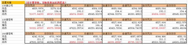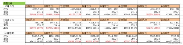 可以看到在135速,理论出伤最高的是攻攻风攻+公司套的组合。