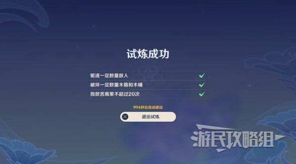 驱逐一定数量的敌人、破坏一定数量木箱和木桶、投放苦离果不超过20次
