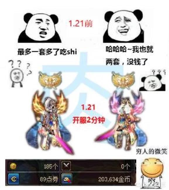 可以说,一套春节套给角色带来的提升在50%以上(三无角色),但是,令玩家们着急的是,每年的称号,宠物,光环之类的,都是在上一年的基础上属性增加一点,让你觉得,不买的话损失几个亿的伤害!(策划好套路)在加上多买多送的套路,坑钱是一套一套的!