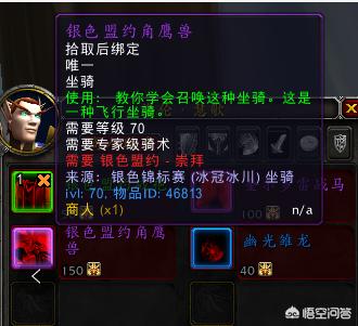 除了副本掉落坐骑之外,WLK版本地图冰冠冰川的银色比武场还有日常声望坐骑,外观也是非常不错的,但是这个声望比较耗时耗力,时间跨度会大一些。