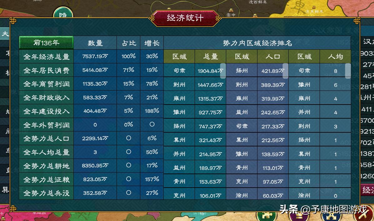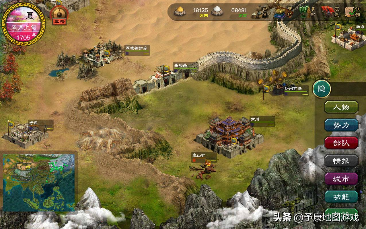 中国历史题材的深度策略游戏,在特定的历史背景下,跳出历史轨迹,自由把控国家方向。涉及古代经济、生产收集资源、修筑工程、军事、外交,开丝绸之路等等,是一款适合慢慢玩的回合制策略游戏。
