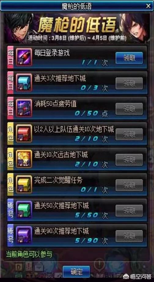 首先,dnf于3月8日更新了魔枪的低语活动,活动持续到4月5日;
