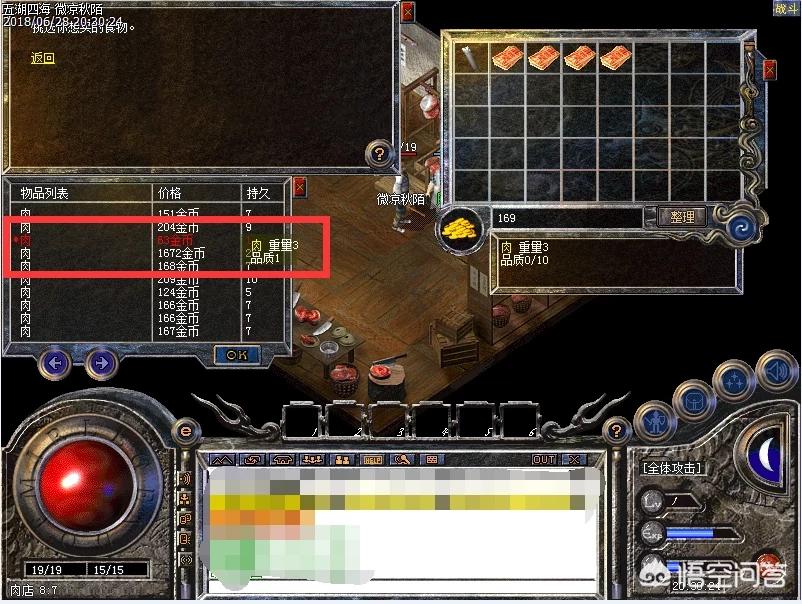 买下肉后,点开包裹,把肉扔地上,再捡起来,一般扔一次会掉2点持久(也就是品质),等持久等于0时,就不要扔了。