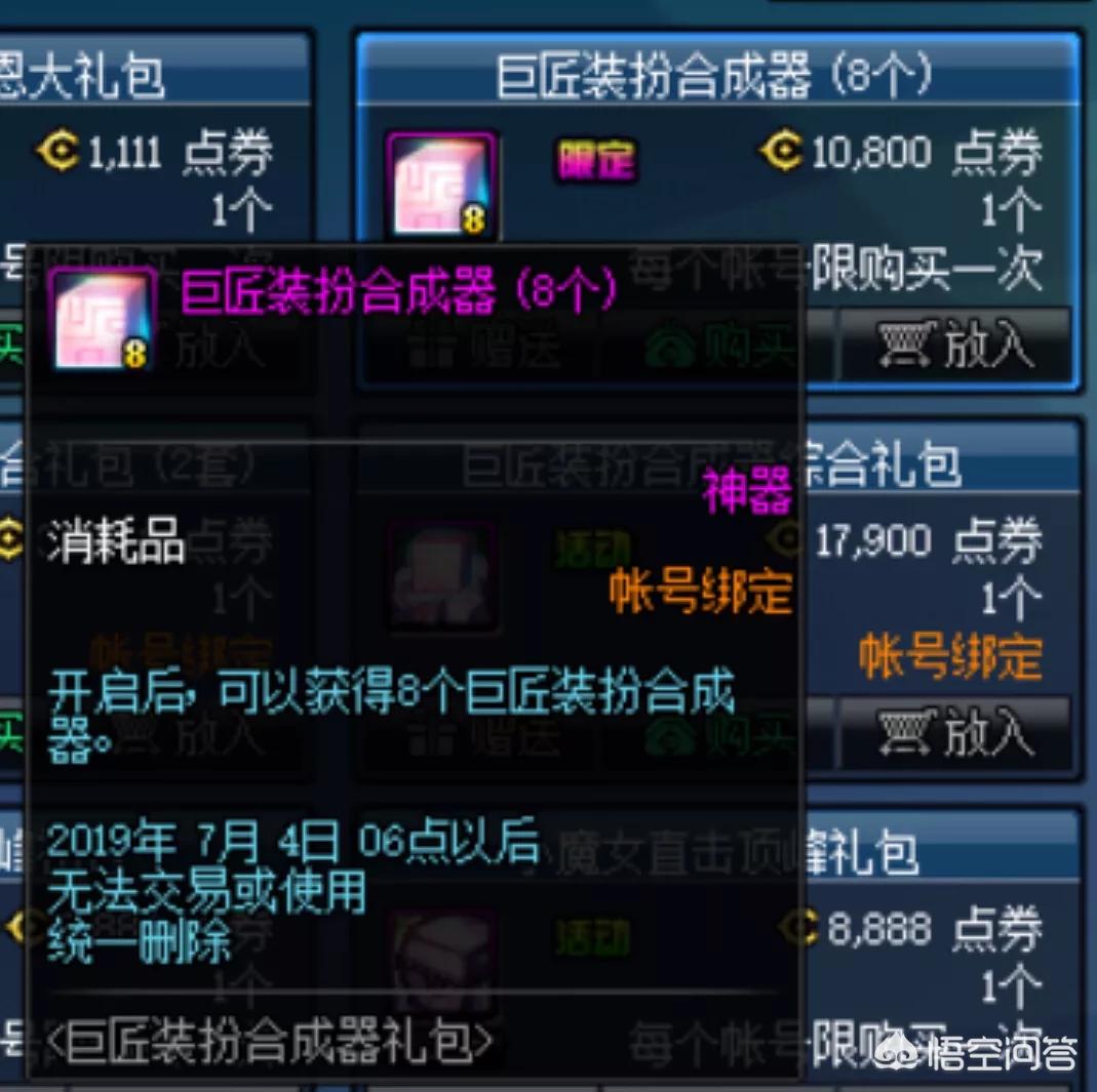 (3)为此,商场推出了有史以来合成天空几率最高的巨匠装扮合成器,108元可以获得8个!但有史以来最高的几率,你敢信吗?体验服玩家8次出了一件,几率真“高”啊!