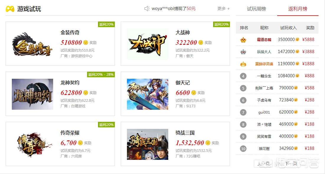或者是充值来个VIP。记住:天下没有免费的午餐。他给你免费的东西就是想让你掏出人民币让你买他更好的东西。想得到真正“免费”的东西,就要有高收入,让那几块钱见鬼去吧!免费的游戏试玩赚钱平台有哪些