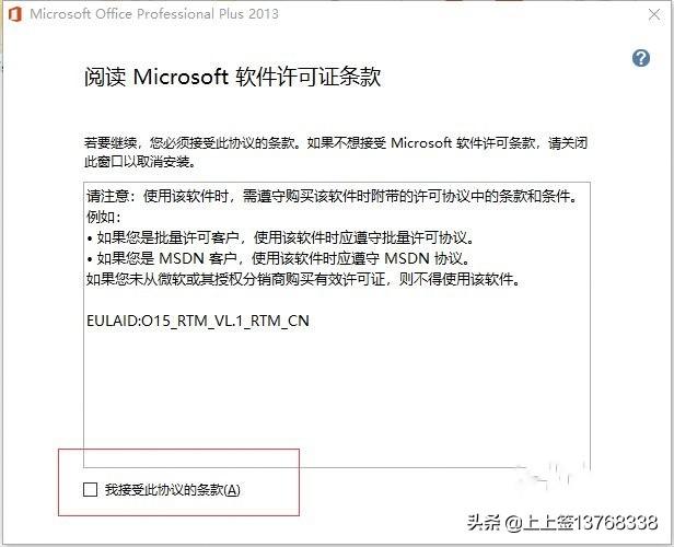 1、解压安装包,打开目录,勾选红色方框内的我接收条款,点击继续;
