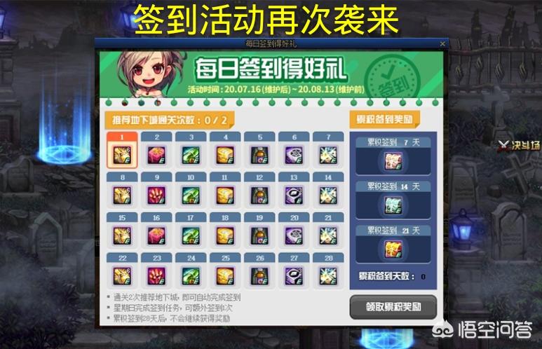 DNF签到活动再次来袭,累积7天可获得50疲劳药,累积21天可获得神器护石自选,如何