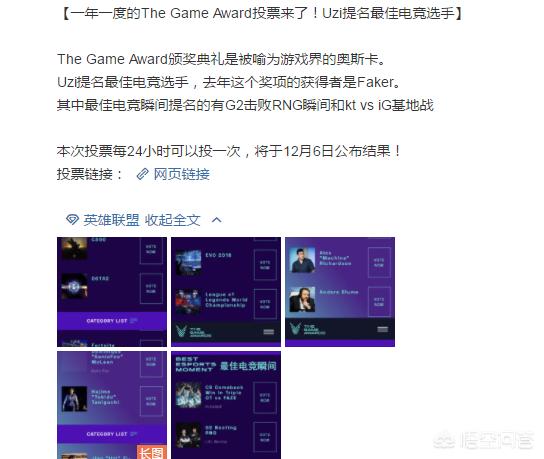 最权威的TheGameAward投票来临,Uzi获最好的电竞选手提名,你怎么看