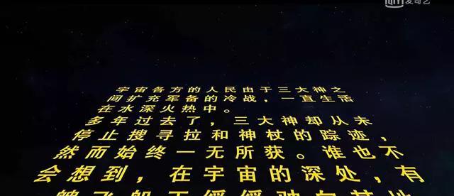 电影开头拉夺取神杖之后出现的黄色字幕,是来自星球大战系列中的梗