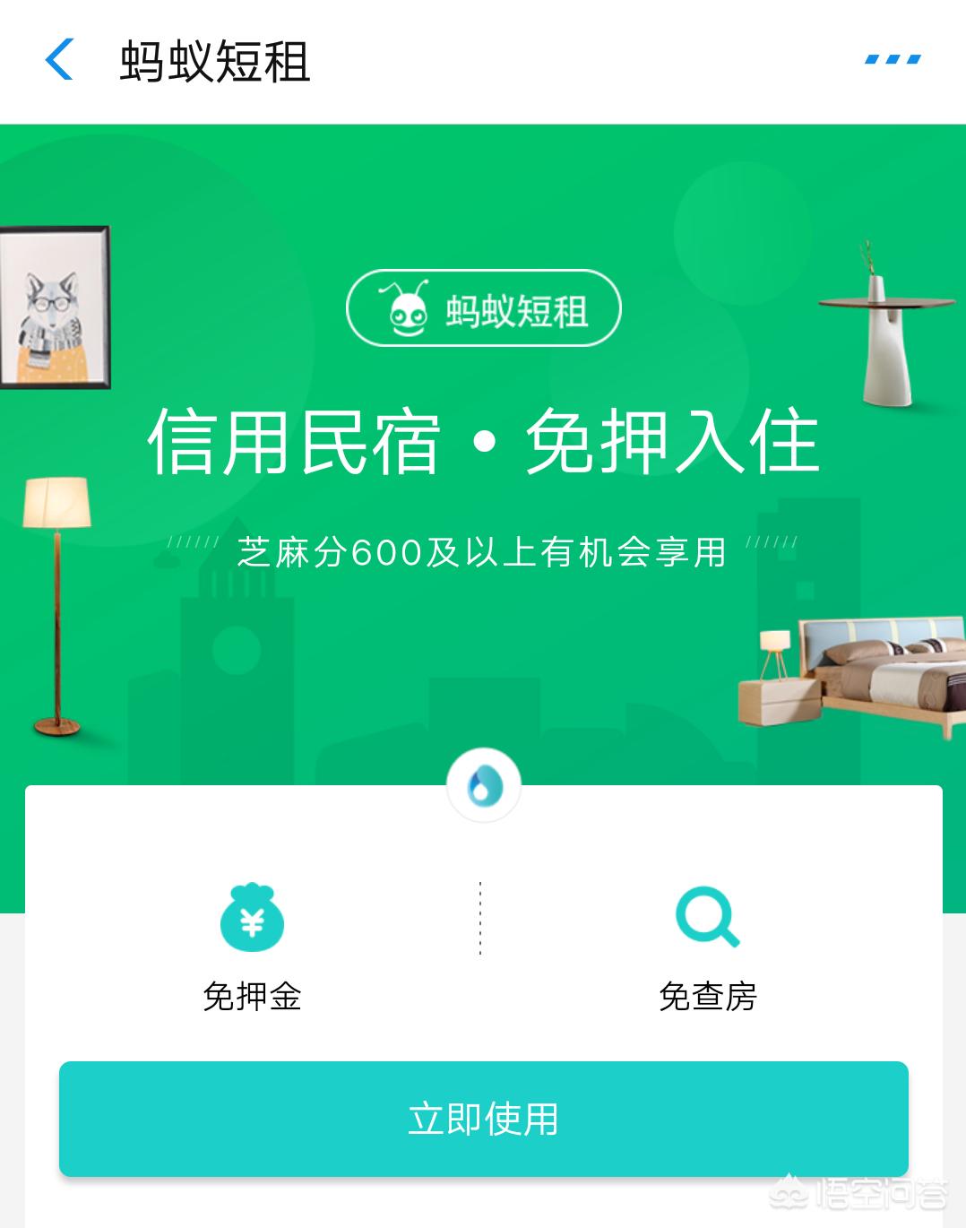 蚂蚁短租能帮助大家省去到处找房子的心酸,而且价格实惠。同时芝麻信用分达到600分及以上,就有机会免押金,还能享受免查房等服务。