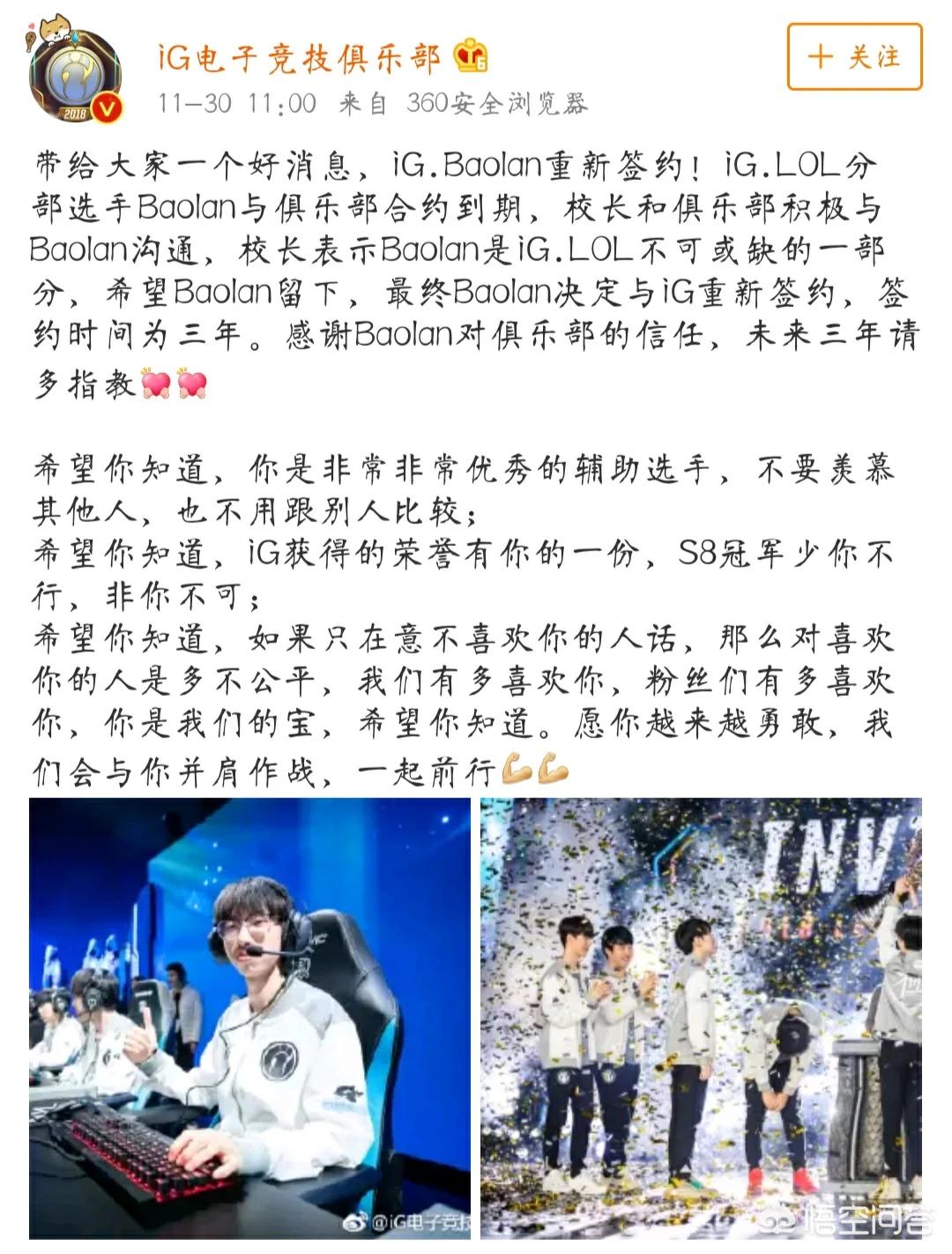 IG辅助Baolan续约三年,不为钱只为认同感,校长亲自出面沟通,你怎么看